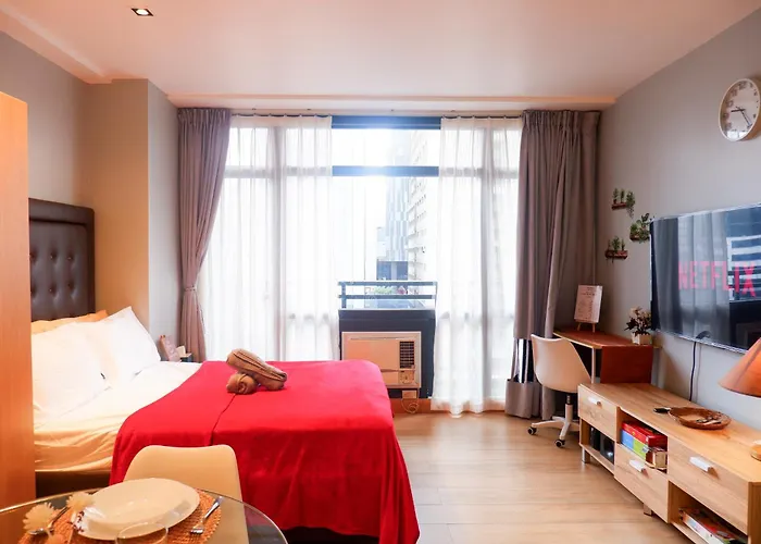 30m²のCondo In Makati With Fast Wifi, Free Pool, Netflix And Own Balcony マニラ市に宿泊すると、グリーンフィールド・ディストリクトから3.4キロメートル離れた所のテラスでリラックスできます。 トルコ式スチームルーム、トルコ式スチームルーム とスチームルームを提供するアパートはアーダネータ少し離れたです。